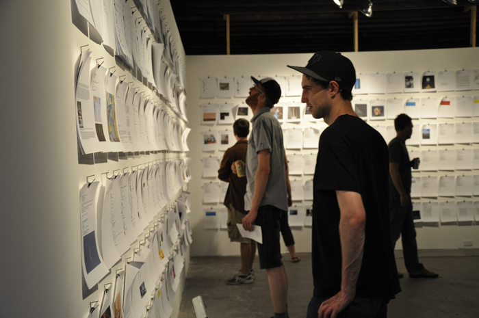 mailto: is an exhibition built around the open portal of an email address. For one month, works or messages of any kind sent in the body of an email or as an attachment to the address anything@driftstation.org were printed and hung, up through the end of the opening reception. 652 emails, totaling over 2,500 pages were printed and installed. The resulting emails were poems, photographs, spam, notes to gallery visitors, and an entire novella.